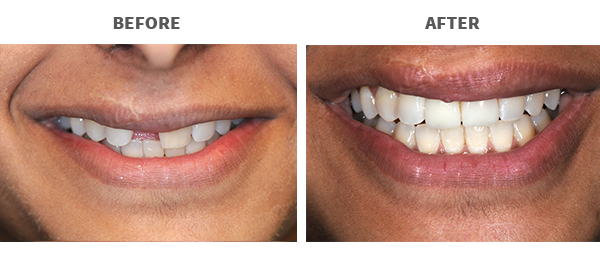 This patient's front tooth was damaged in an accident. Dr. Clark was able to successfully treat the tooth with a veneer.